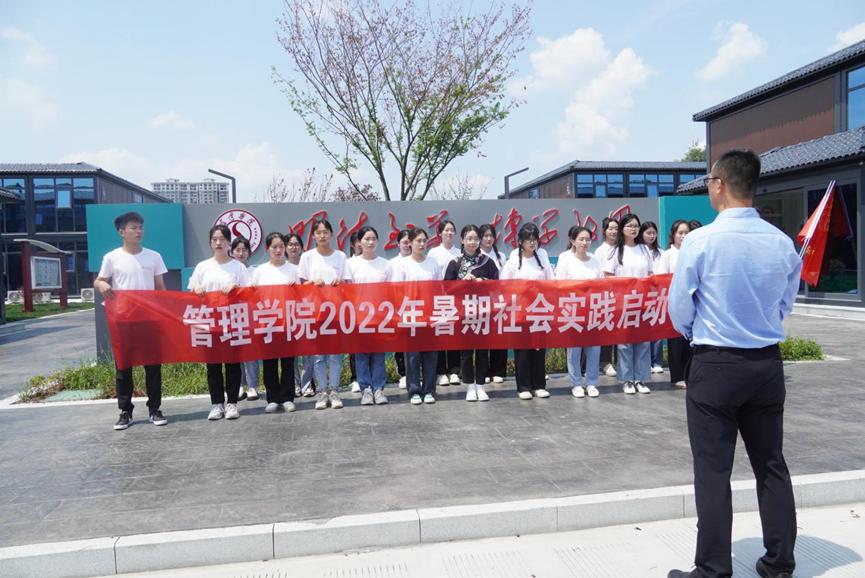 (图为管院产教融合探索乡村振兴之路暑期社会实践出发前在系办合影留恋。中国青年网通讯员 梁滕明 供图)