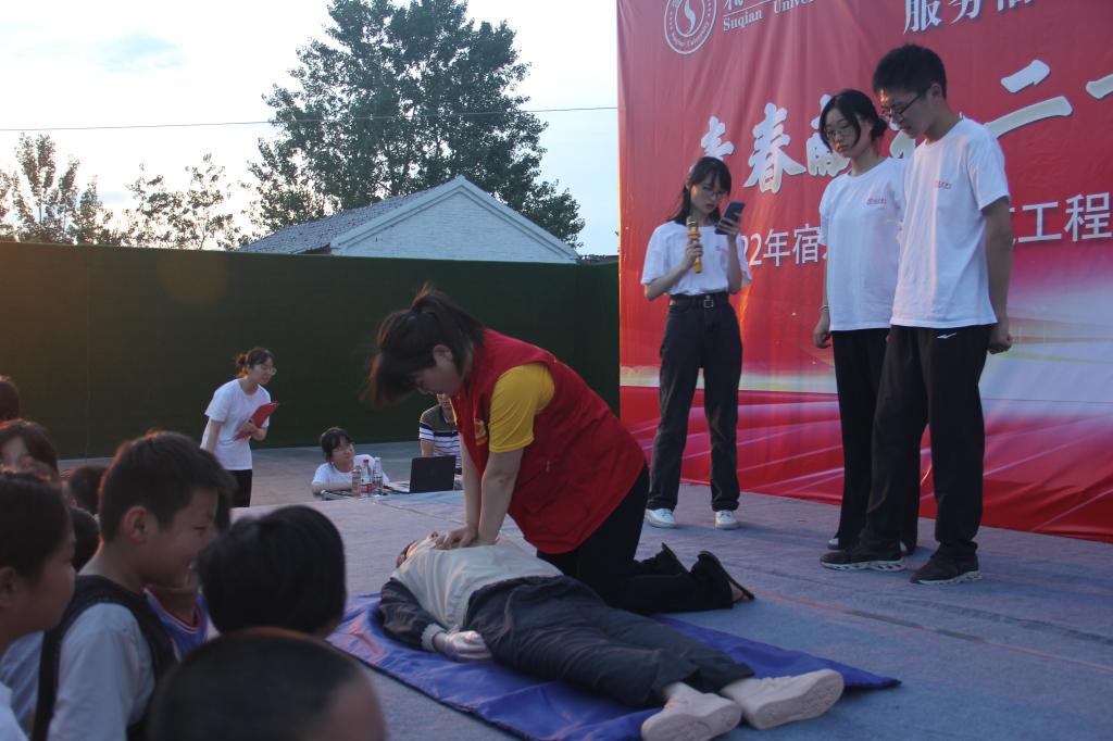 普急救知识,护邻里健康。博爱青春实践团向村民们发放急救知识宣传印刷资料,宿迁市黄河救援队张炎向村民进行急救知识理论宣传,对如遇地震、火灾、烧烫伤等情况的急救处理办法进行了细致的理论培训。并以小品的形式向村民科普心肺复苏、气道异物梗阻等急救具体操作。宣传活动内容通俗易懂、贴近生活场景,增强了村民们的急救知识储备能力、应急救护能力和自我保护的能力。