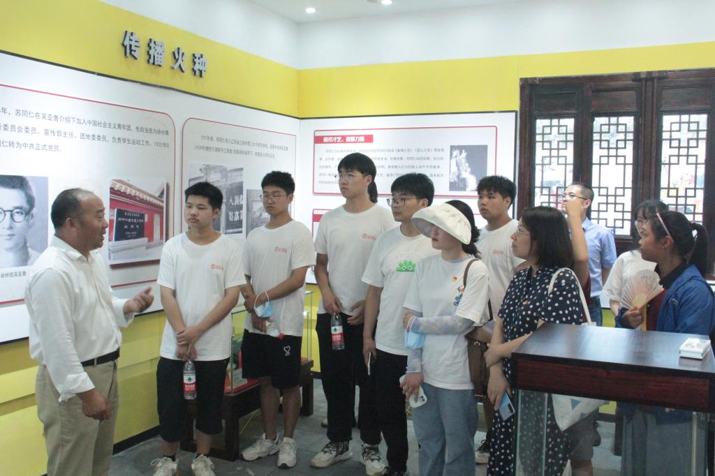 追寻红色记忆,传承时代薪火。理论宣讲团前往宿迁市第一位女共产党员苏同仁的故居开展理论宣讲。同学们参观学习故居,聆听英雄事迹,在红色氛围中培养高尚情加强爱国主义教育。风景园林专业学生现场为红色地标式建筑绘画。在苏同仁故居前,理论宣讲实践团的同学们为村民们带来了红色经典诗文、红色故事、红色家书、红色人物、红色歌曲、民族舞蹈、红色小品等精彩纷呈的表演。表演寓教于乐,丰富多彩,让村民们不仅能欣赏到同学们精心准备的节目,还能亲身参与到丰富的文化活动中。